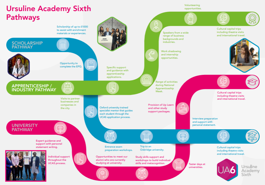 UA6 offers a range of A-levels and a limited number of level 3 BTECs which can be combined for your programme of study. For more details on each subject, see the curriculum section of the school website.